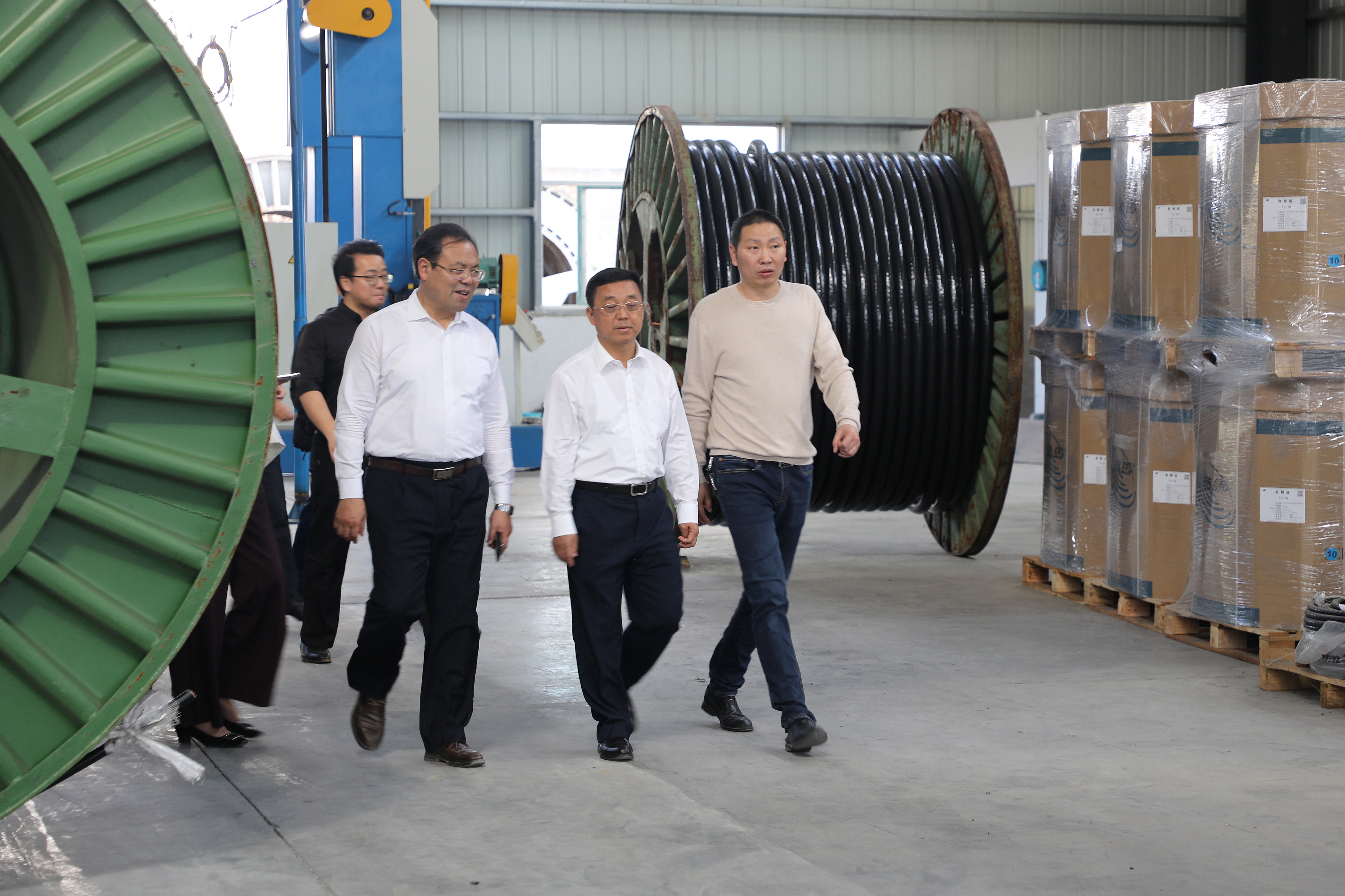 劉副市長(zhǎng)一行人深入車間,對(duì)電線電纜以及三湘電纜的發(fā)展進(jìn)行進(jìn)一步的了解。參觀過(guò)程中,劉副市長(zhǎng)對(duì)電線電纜生產(chǎn)工藝產(chǎn)生了濃厚的興趣,在車間內(nèi)詳細(xì)詢問(wèn)了三湘電纜的生產(chǎn)工藝和銷售情況,得知三湘電纜是永州本土的優(yōu)秀企業(yè)后對(duì)三湘電纜的邵商企業(yè)精神表示敬佩,同時(shí)對(duì)三湘電纜所生產(chǎn)的線纜產(chǎn)品豎起了大拇指。